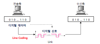 수신 측의 원활한 동기 재생과 오류 검출을 위해 2진 bit의 디지털 데이터를 신호 전달을 위한 의미 있는 디지털 신호(기저대역 신호, 전기적 신호)로 변환하는 과정