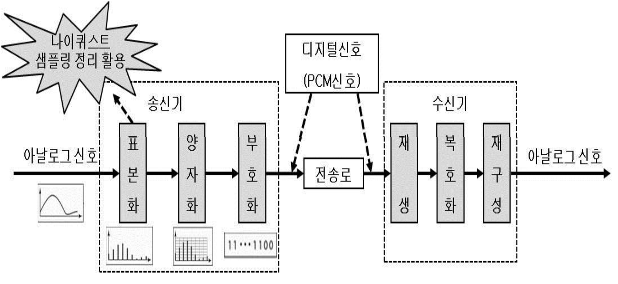 표본화 > 양자화 > 부호화 > 재생 > 복호화 > 재구성
