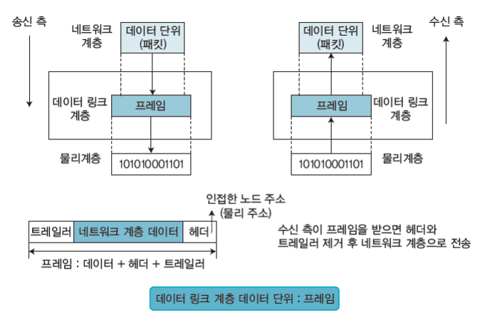 OSI 7 Layer의 하위 계층인 2계층으로 두 시스템 사이에서 오류 없이 정보 데이터를 전송하려고 상위 계층에서 받은 비트열의 데이터로 프레임을 구성하여 하위 계층으로 전송