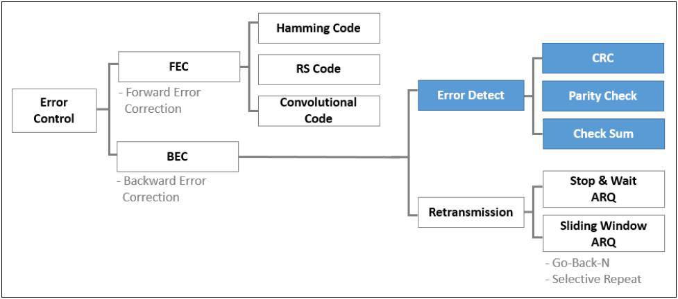 | Data Link | – 상대방과 물리적인 통신을 위한 통신로를 확립하는 계층 – Data의 다중 접근, 흐름 제어, 오류 검출 및 정정(BEC, FEC) – 전송 단위: Frame – e.g. HDLC, LAP-B, LLC, PPP, 브릿지, L2스위치 |