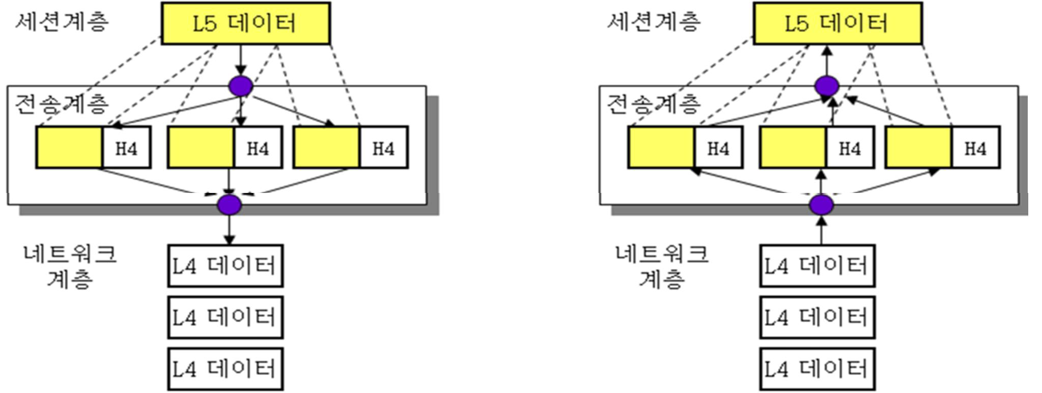 | Session | – 네트워크 상에서 통신할 경우 host간에 최초 연결 – 통신 중 연결이 끊어지지 않도록 유지시켜주는 계층 – 7, 6, 5계층을 통해 data 생성 |