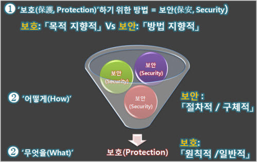 보호 Protection, 추상적인 개념, 보안보다 광의적 의미로 사용, 전체 시스템의 안정성을 확보하는 것