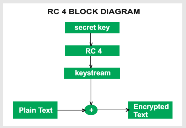 - Rivest 가 설계한 바이트 단위로 연산을 하는 키 크기가 가변인 스트림 암호