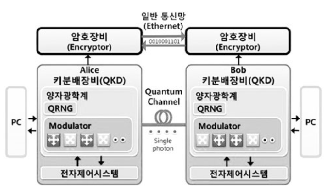 - 양자암호통신(Quantum Cryptography Communication)양자키분배 (QKD, Quantum Key Distribution)