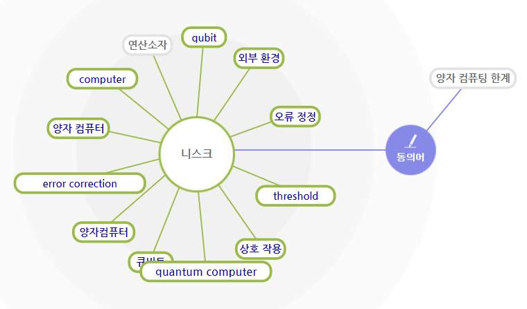 ‘noise(잡음)’ : 양자 컴퓨터의 기본 연산소자인 큐비트(qubit)가 하드웨어 상에서의 어떤 결점이나 주위 환경의 영향으로 인한 연산 오류에서 자유롭지 못하다는 점을 상징