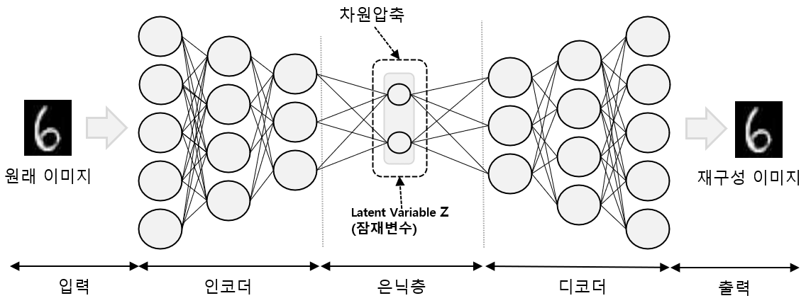 - Encoder, Decoder, Latent Variable, 차원의 저주 예방, 특성 추출