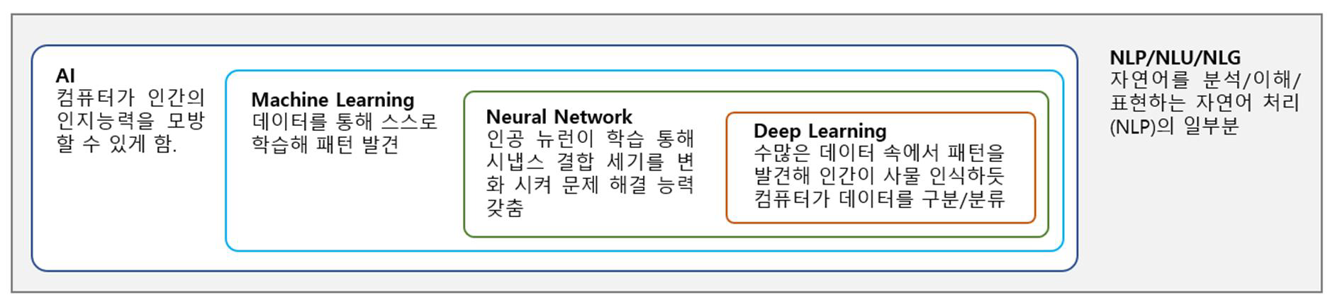 - 인간의 언어 현상을 기계적으로 분석해 컴퓨터가 이해가능한 형태로 만드는 자연언어 이해/변환 과정 혹은 그러한 형태를 다시 인간이 이해가능한 언어로 표현하는 제반 기술