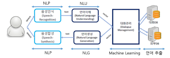 - 사용자 발화를 기계가 이해할 수 있는 텍스트로 변환한 후, 언어 이해