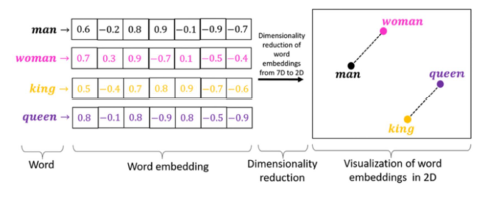 - 단어 간 유사도 및 중요도 파악을 위해 단어를 저차원의 실수 벡터로 매핑하여 의미적으