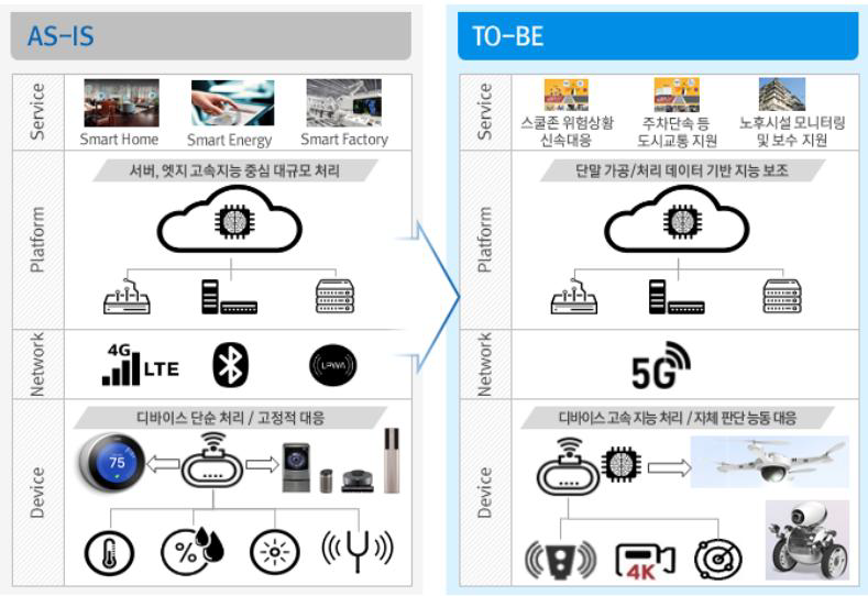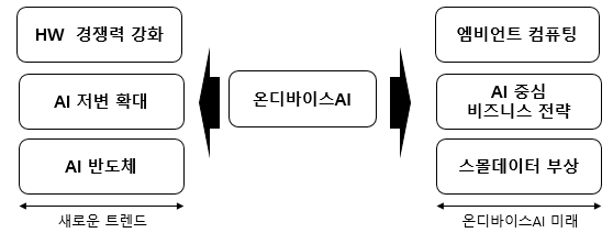 - 멀리 떨어진 클라우드 서버를 거치지 않고 스마트기기 자체적으로 정보를 수집하고 연산할 수 있는 AI 기술