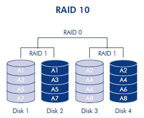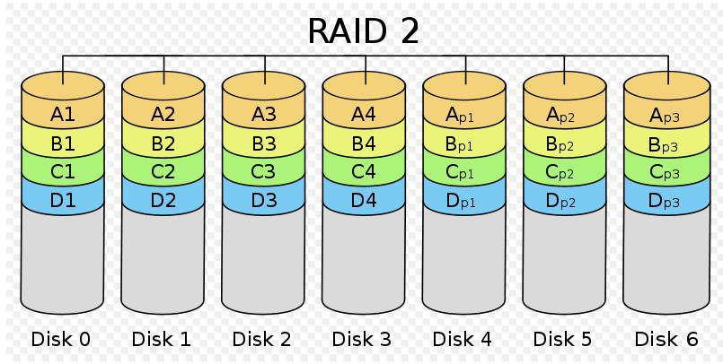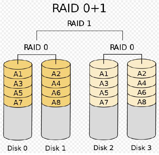 - RAID(Redundant Array of Independent Disks), RAID 0(Striping), RAID 1(Mirroring), RAID 2(비트수준분산+해밍코드), RAID 5(블록분산+패리티분산), RAID 0+1(Striping 후 Mirror), RAID 1+0(Mirror 후 Striping), 0 스트라이핑, 1 미러링, 2 ECC, 3 패리티, 4 블록, 5 분산, 6 더블
