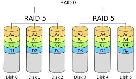 - 여러 개의 디스크에 데이터 중복 저장과 데이터의 분산 저장을 통한 성능 향상과 안정성 향상을 위한 스토리지