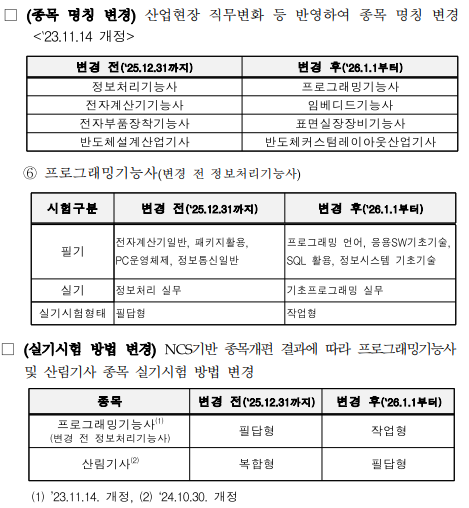 정보처리 기능사가 프로그래밍 기능사로 변경됩니다.