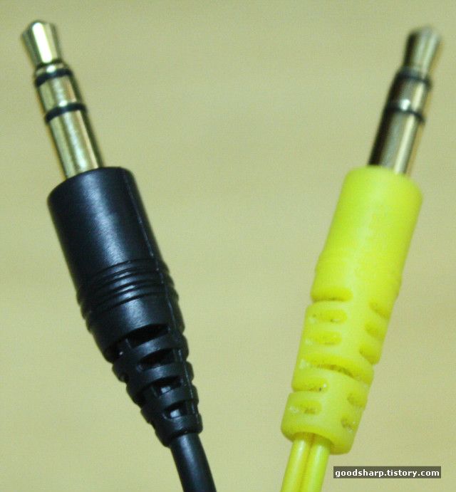 이어폰과 접속부의 연결 단다를 보면 지지역할을 하는 부분의 여부가 뚜렵히 다르게 표시되고 있다.