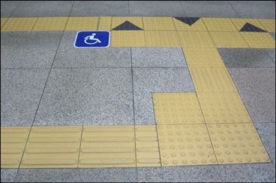 시각 장애인을 위해 설치된 안내 보도블럭에 대한 언성이었다.