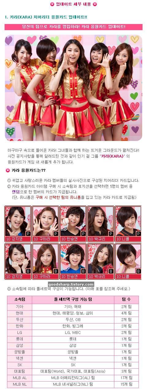 근데. 이번에는 카라가 치어리더로 팀에 30일간 유저의 할당된 팀에 여러가지를 올려준다.