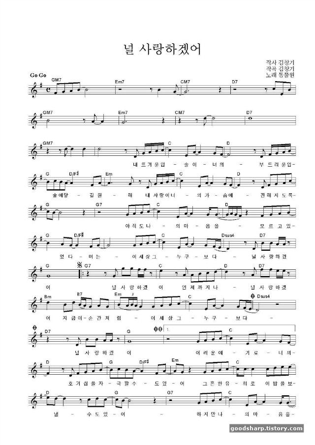 [추억의 노래] 동물원의 널 사랑하겠어 악보&뮤비
