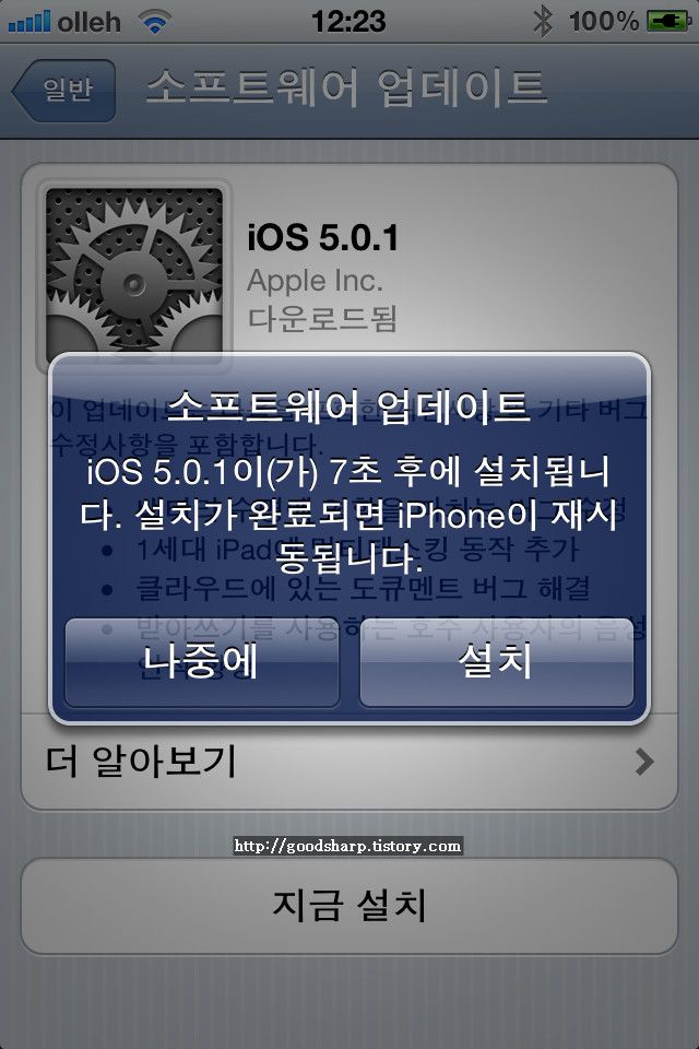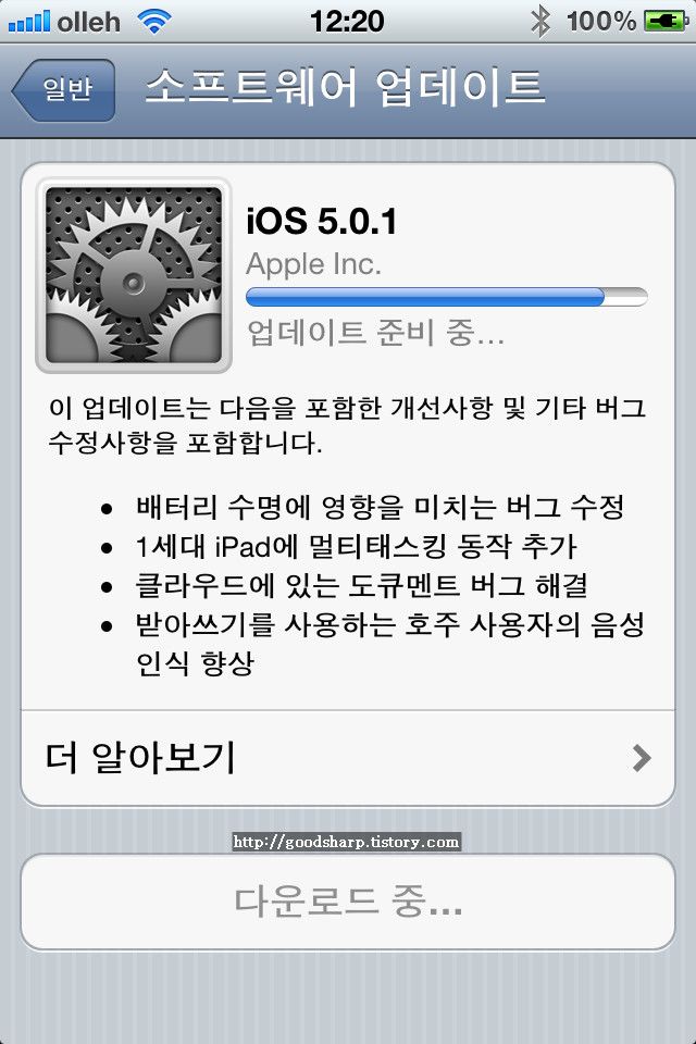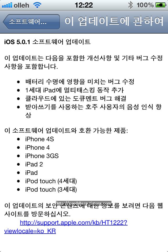 iOS 5.0.1 버전 업... 배터리 버그 수정!!