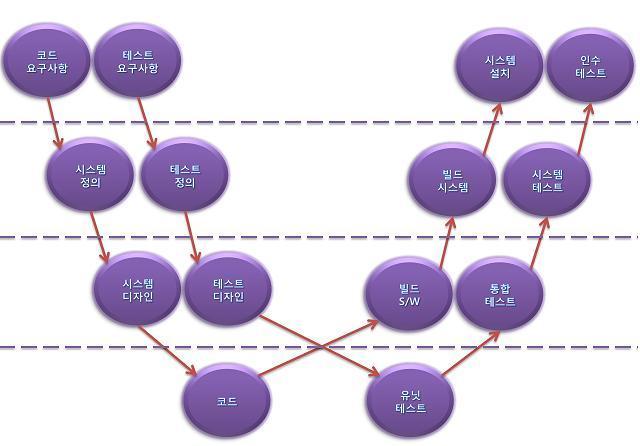 이 내용을 간단히 보자면 개발 초기부터 사용자에게 인수되는 시점까지 테스트를 진행하는 방법론을 제시하는 것이다.