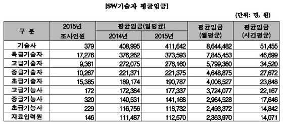 2015년 소프트웨어 기술자 노임단가(평균임금) 공개