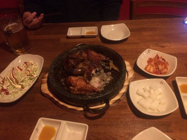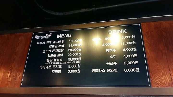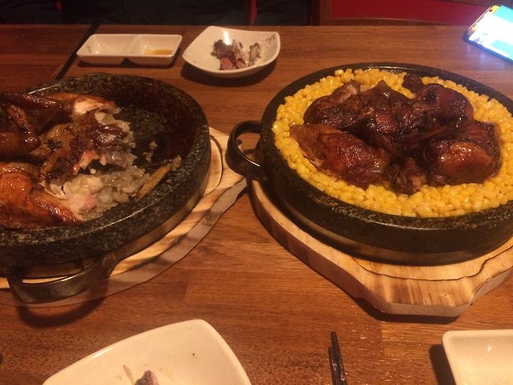 우선은 회식이기 때문에 차례대로 하나씩 시켰다. 누룽지 위에 엎드린 닭, 엎드린 콘닭, 엎드린 콘치즈닭....