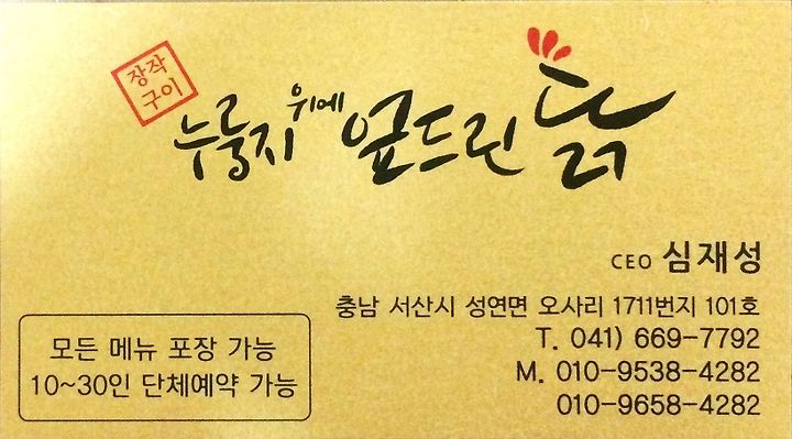 누릉지 위에 엎드린 닭은 서산 테크노밸리 초입에 오픈한 집으로, 화덕에서 참나무로 1시간 반이나 굽는다고 한다.