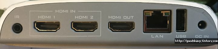 디바이스 뒤에는 총 7개의 단자가 있다. HDMI 단자는 총 2개의 단자가 있고, HDMI OUT 단자가 있다.