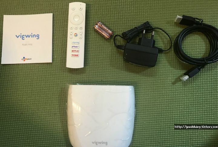 부품은 설명서, 리모콘(블루투스), 건전지, 아답처, HDMI케이블, 디바이스를 제공합니다.