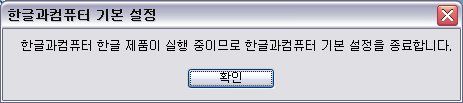 한컴 기본 설정 중에 제품을 실행해두었더니 경고메세지가 나타납니다.