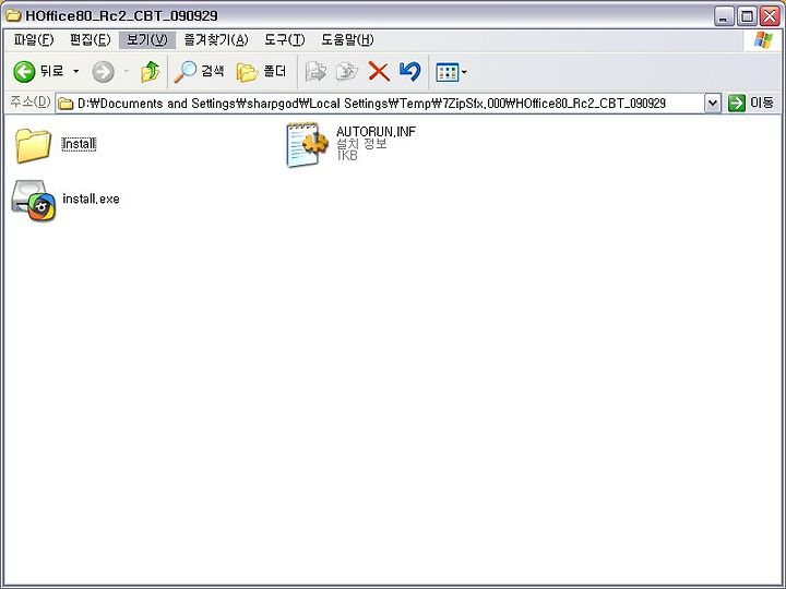 temp폴더에 저장된 자동 압축 풀기 내용들이다. 해당 내용이 패키지로 배포될 때에는 autorun을 통하여 사용자의 컴퓨터에 설치할 수 있게 될 것이다.