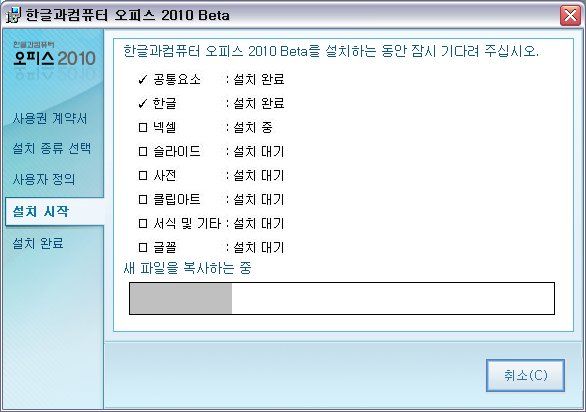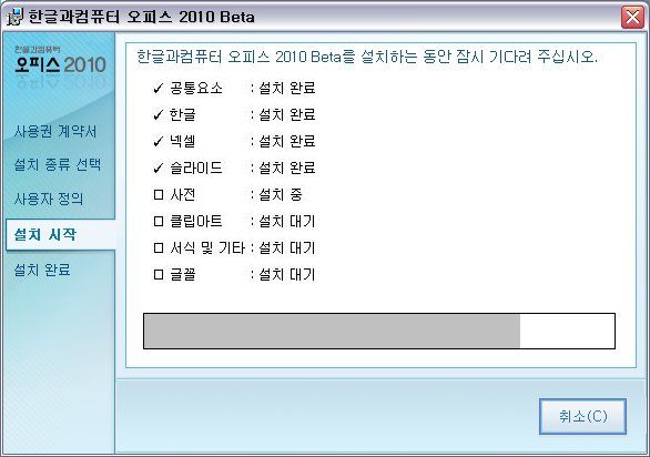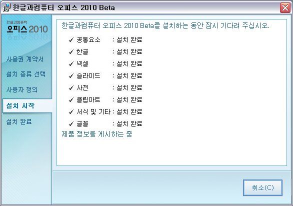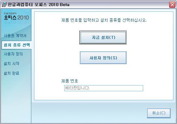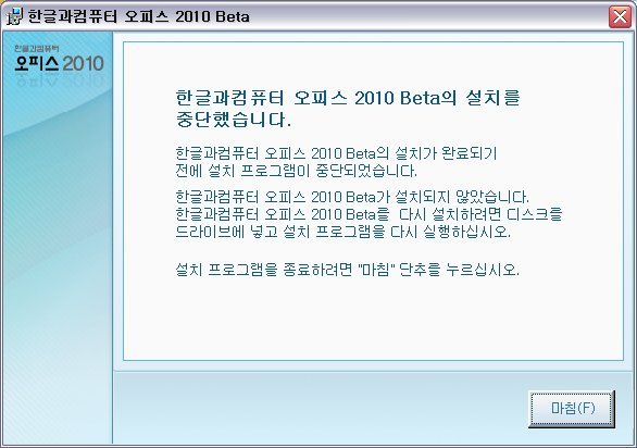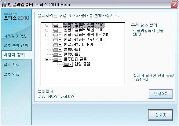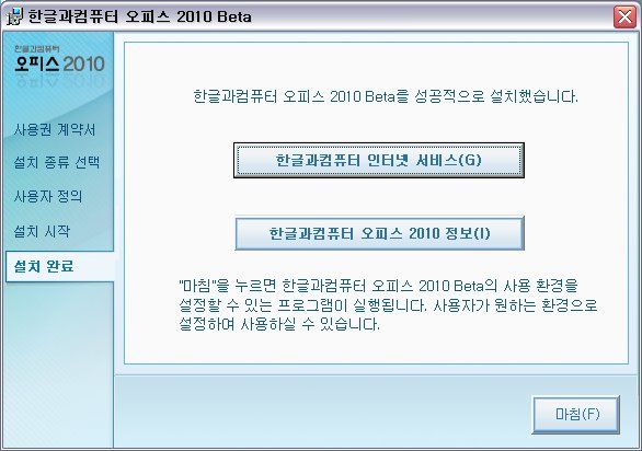 지금까지 한컴2010 beta에 대한 설치를 설명하였습니다.