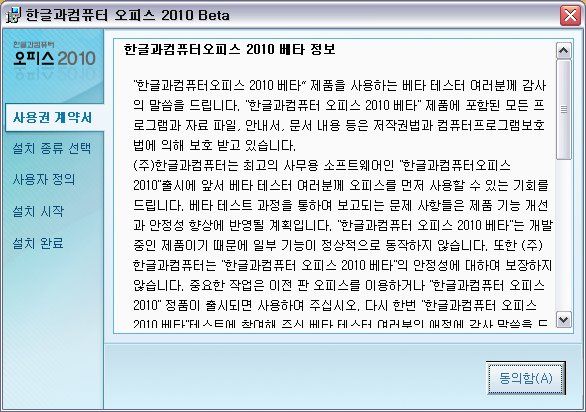 한컴 2010 클로즈 베타테스트 설치하기(1)